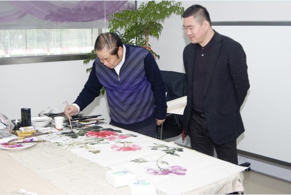 上海广之缘集团总经理祝建军先生观看杭英大师作画
