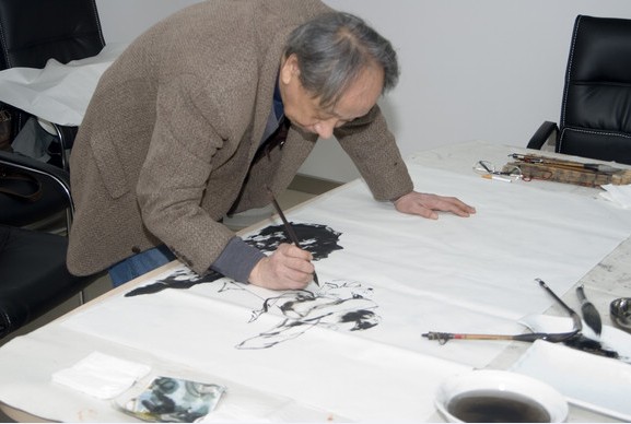郝耀庭大师正在创作擅长的人物作品